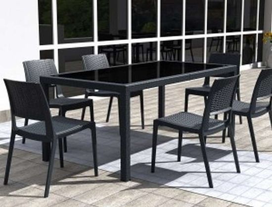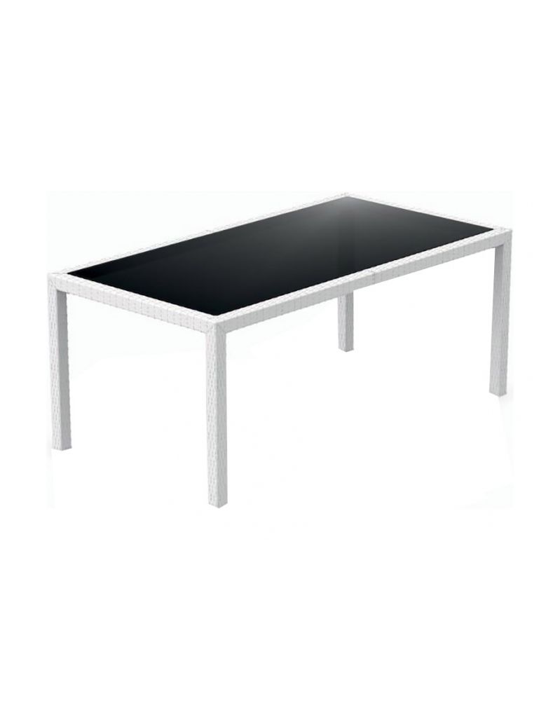 Τραπέζι του οίκου Siesta κατασκευασμένο από πολυπροπυλένιο και επιφάνεια από τζάμι ασφαλείας. Κατάλληλο για εσωτερική και εξωτερική χρήση, UV Protection. Πιστοποιημένο προϊόν από τον Ιταλικό οίκο CATAS.