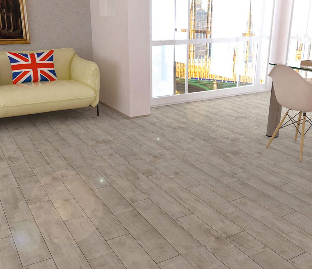 Δάπεδο laminate κατηγορίας AC5 (πάχος 8mm) με αρμό V στις τέσσερις πλευρές, ιδανικό για κατοικίες και βαριά εμπορική χρήση.