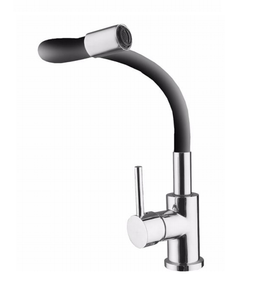 Μπαταρία νεροχύτη μιξ πάγκου ψηλή με εύκαμπτο ρουξούνι (μαύρο).