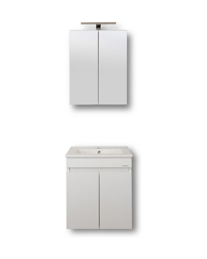 Καθρέφτης OMEGA 50. Περιλαμβάνει πρόσοψη καθρέφτη με δύο πόρτες και ένα χώρο αποθήκευσης για την τοποθέτηση αντικειμένων καθημερινής χρήσης για εσάς και την οικογένειά σας. Συνδυάζεται με φωτιστικό LED 5 Watt IP44, το οποίο αντιστοιχεί σε λάμπα πυρακτώσεως 60 Watt.