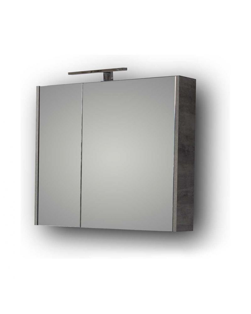Καθρέφτης SAVINA 80. Περιλαμβάνει ένα ευρύχωρο ντουλάπι με εσωτερικό ράφι. Η πρόσοψή του αποτελείται απο μεγάλο καθρέφτη με ξύλινο πανέλο που ανοίγει προς τα δεξιά και μια μικρότερη ξύλινη πόρτα στο αριστερό πλαϊνό μέρος στον ίδιο χρωματισμό. Συνδυάζεται με φωτιστικό LED 5 Watt IP44, το οποίο αντιστοιχεί σε λάμπα πυρακτώσεως 40 Watt (δεν περιλαμβάνεται).