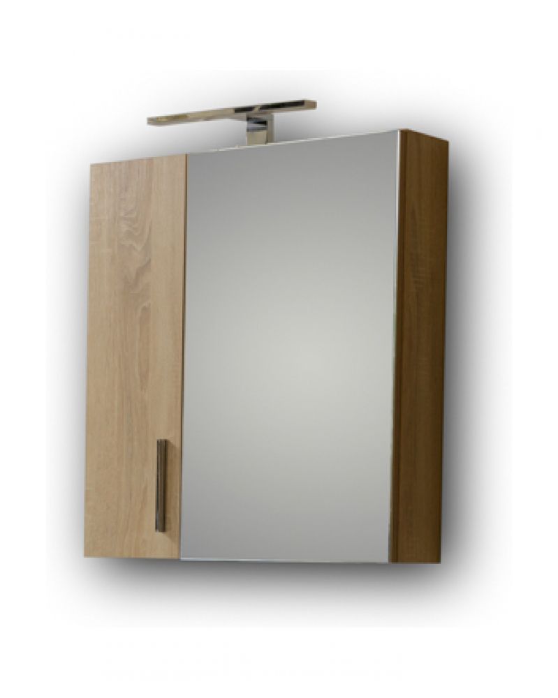 Η πρόσοψή του αποτελείται από μεγάλο καθρέφτη με δύο πόρτες προσθέτοντας στην προοπτική του χώρου σας. Περιλαμβάνει εσωτερικό κρυφοντούλαπο με ράφι για την τοποθέτηση των φαρμάκων και αντικειμένων καθημερινής χρήσης. Συνδυάζεται με φωτιστικό LED 5 Watt IP44, το οποίο αντιστοιχεί σε λάμπα πυρακτώσεως 60 Watt (δεν περιλαμβάνεται).